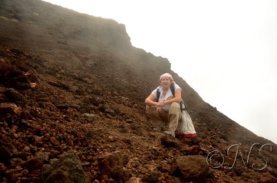 A d’autres moments, c’était des grosses pierres de lave qui barrait ma route hasardeuse et c’était plus difficile pour avancer… Et j’ai continué vers le volcan. Puis les pierres sont devenues très grosses et très anguleuses, des trous plus profonds… Alors j’ai rangé l’appareil photo et je me suis accrochée à la roche…