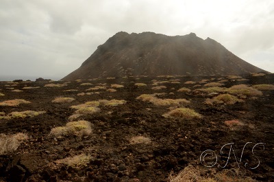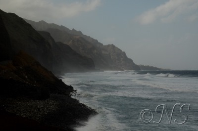 Plus tard, le chauffeur m’a laissé faire ma randonnée d’une heure autour de volcan qui surplombe la ville de Calhau. Au début, il y avait un sentier près de la mer qui était un peu déchaînée. Je pouvais admirer les vagues s’éclater sur la lave noire.