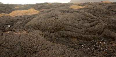 J’ai coupé dans le champ de lave vers le volcan, sur la lave cordée qui accrochait bien aux pieds, pas de risque de glisser.