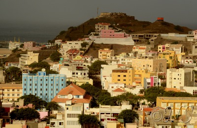 Après quatre heures de retard, dont la moitié étaient dues au brouillard à Roissy, j’arrive à l’aéroport de Sao Vicente, l »ile principale. Il fait beau et chaud mais l’air est très sec. Un taxi m’attend. Il me conduit à l’hôtel et le soleil est couché. L’hôtel, de style familial, surplombe la ville et je fais quelques photos depuis la terrasse. J’aime regarder les maisons bleues, roses, orange qui donnent de la gaité à cette ville.