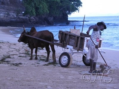 Si vous vous levez suffisamment tôt, vous verrez le zébu tirant la charrette sur la plage, les femmes avec leurs lourds paniers sur la tête qui vous vendent bananes, ananas, vanille, poivre, cannelle, paréos, grandes nappes brodées à jours, rideaux, napperons…