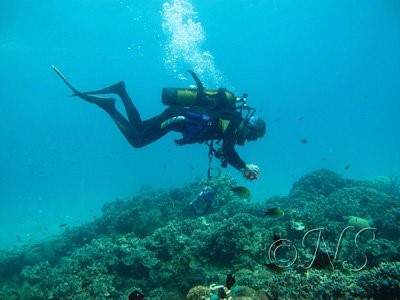 Les plongées sont peu profondes, entre 3 et 18 m. Elles sont d’autant plus longues, de une heure à une heure et demi. La température de l’eau, 30°C, ne nous a jamais laissé l’occasion d’avoir froid ! Une combinaison légère suffit mais reste indispensable pour se protéger des coraux coupants ou urticants.