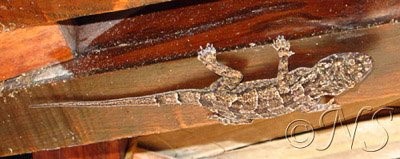 Sur les murs extérieurs ou les troncs de palmiers, il y a de nombreux lézards d’un beau vert tacheté de rouge et de turquoise et la nuit, les geckos les remplacent faisant une orgie de moustiques.