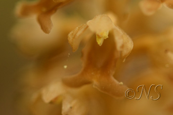Nous avons observés quelques pieds de Limodore qui sortaient de terre et qui se retrouvaient donc en plein soleil alors que ces plantes sans chlorophylle poussent habituellement à l’ombre.