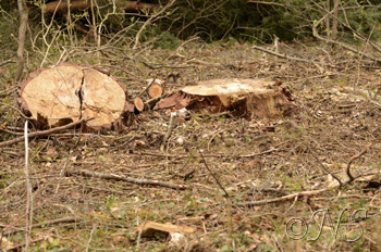 De plus les pins et les tas de branches étaient entreposés sur les sites d’ orchidées (Ophrys, Plantanthère, Néottie) dont notre hybride rare d’Ophrys qui n’a aucune chance de sortir cette année…. Les traces des roues des engins venus abattre ces arbres sont très visibles et s’enfonçant dans le sol détruisent d’autant plus les plantes qui s’y trouvent.
