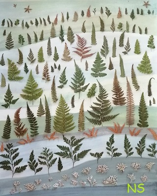 Avec les frondes de fougères de différentes espèces, j’ai créé un paysage naïf.