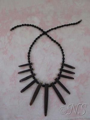 Sur la photo suivante se retrouvent plusieurs coquillages ramassées sur des plages sous les tropiques mélangés avec quelques perles de bois noir.
