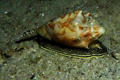 Une Volute, un mollusque nocturne de promène et cherche sa nourriture