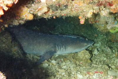 Plongée à 25 m, positionnés le long d’une corde et attente…Nos trois guides de plongée sont positionnés de sort qu’il observent sur 360° . Nous sommes certainement une attraction pour le requin renard. Daignera t-il venir? Eh bien non, nous ne l’avons pas vu. Certains ont aperçus le bout de sa queue le premier jour.