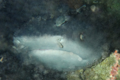 Nous avons fait trois plongées de nuit durant cette croisière, la première assez pauvre, la deuxième plus intéressante et la troisième le long d’un ponton très riche. Nous avons observé de nombreux oursins de nuit qui hébergeaient de petites crevettes, des comatules déployées, gorgonocéphales, des hippocampes, un gros poisson vache et de beaux bernard l’hermite.