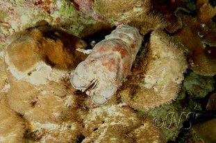 En regardant encore de près, dans les trous laissé par des vers spirographe, nous avons vu de petites blennies de 1 à 3 cm qui happaient les particules en suspension. Leurs gros yeux, leurs grosses lèvres et leurs excroissances sur la tête leur donne un air surprenant d’extraterrestre.