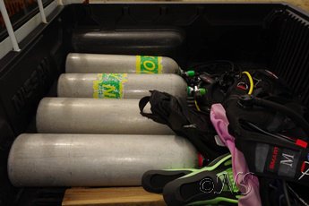 Nous avons un pick up loué au centre de plongée qui peut recueillir 4 bouteilles de 12 litres à l’arrière.