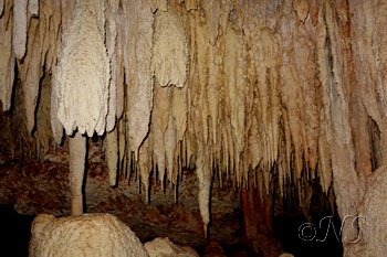 Cette île est sèche mais en février, saison sèche, nous avons eu de la pluie presque tous les jours. L’eau traverse le sol calcaire et crée un réseau de rivières sous-terraines. Les grottes sont nombreuses et nous en avons visitées deux. Nous avons eu le loisir de se baigner dans l’une d’elle.