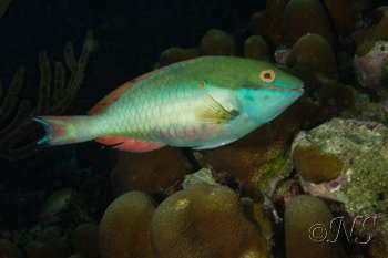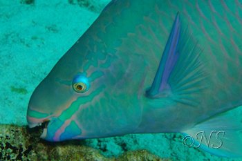 Les poissons perroquets sont très nombreux à la fois en espèces et en quantité. Ils se nourrissent des algues qui poussent sur les coraux morts et le substrat et participent amplement à la bonne santé du récif.