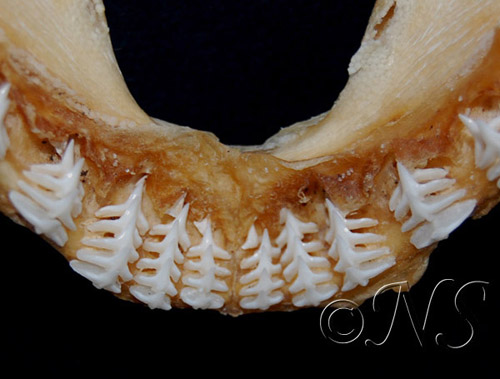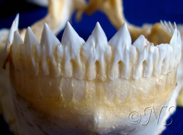 L’ange de mer possède une forte mâchoire ornée de petites dents toutes de la même forme.