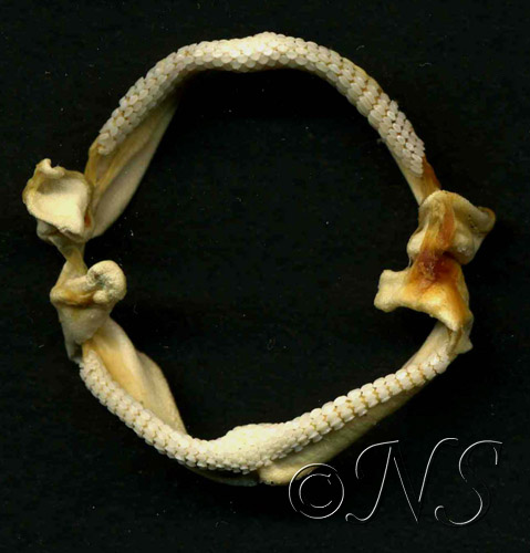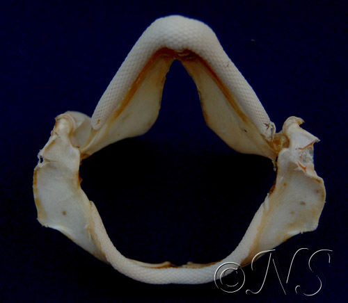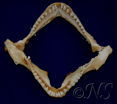 Ici, la mâchoire de la grande roussette. Elle se nourrit de crustacés, mollusques et céphalopodes.