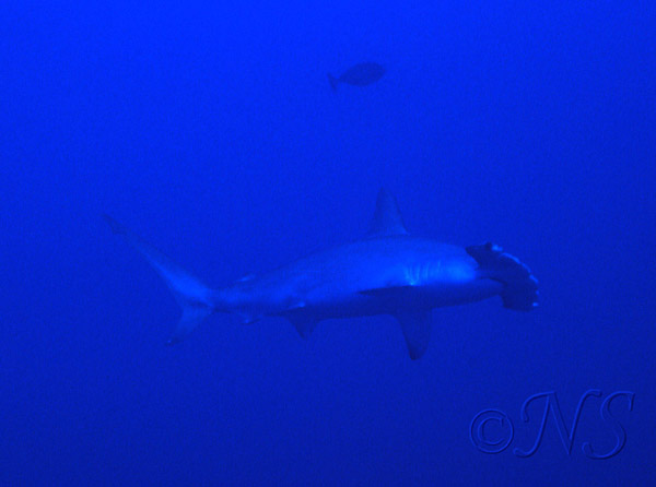 Un requin marteau nage tranquillement par 30 m de fond le long de l’île de Little Brother, en Mer rouge.
