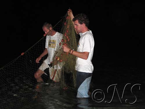 Nous attendons encore mais personne en vue. Vers 21 heures, nous repartons après avoir levé le filet.