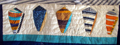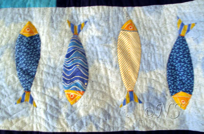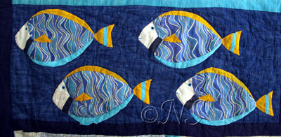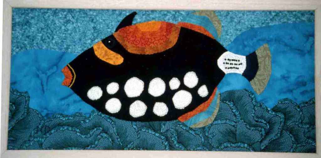 Mes patchworks sont entièrement faits à la main. Je n’utilise la machine à coudre que pour les contours de certains tableaux suspendu. Pour les autres, c’est tout à la main. Mon objectif n’est donc pas le rendement mais le plaisir de créer et d’assortir des couleurs pour restituer la beauté de la nature, qu’elle soit terrestre ou sous-marine. J’ai essayé plusieurs techniques mais celle que je préfère est celle de “l’appliqué”.Je pratique la plongée sous marine et la photo sous-marine et les poissons et les coquillages sont restés plusieurs années mes motifs favoris.