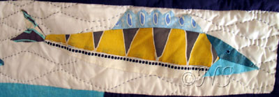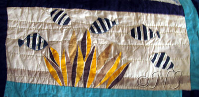 Un tableau sous-marin inspiré d’une photo devient un tableau de tissus, un patchwork.