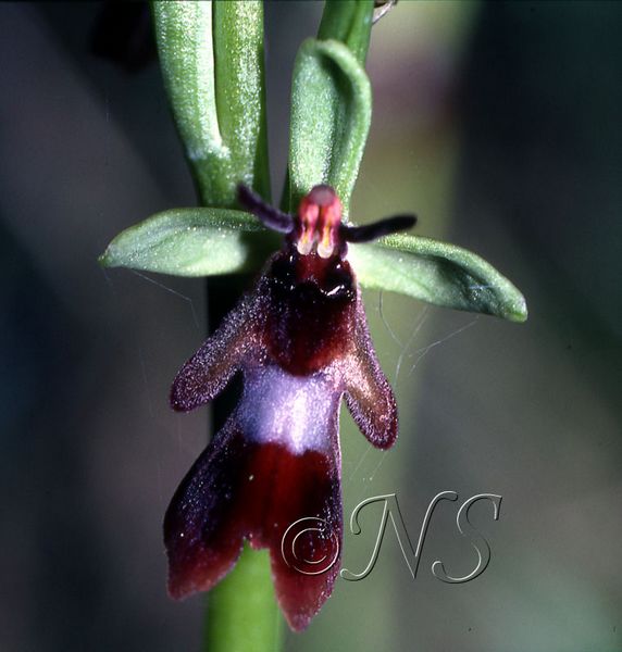 Après avoir traversé la voie ferrée, nous arrivons dans un petit bois où fleurissent de nombreuses orchidées dont l’Orchis pourpre, Orchis purpurea,
