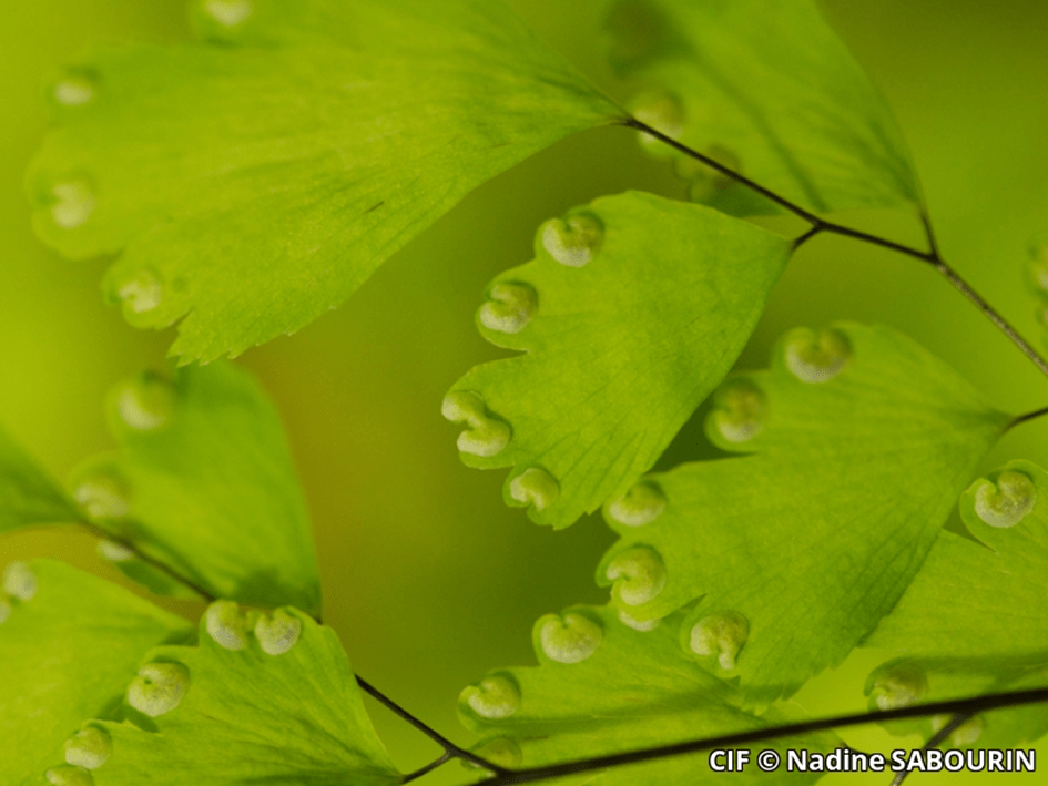 Adiantum : du grec adiantios « qui ne se mouille pas » allusion à la particularité des feuilles sur lesquelles l’eau de pluie glisse