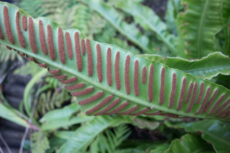 Les sores, de 6 à 40 paires, face abaxiale sont linéaires, jusqu’à 3 cm de long, sur la paire adjacente de nervures émergeant de la nervure médiane, le long de la nervure, ne s’étendent pas jusqu’aux marges ;