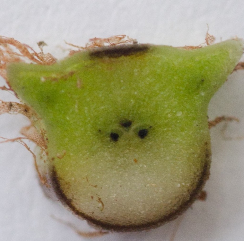 l’indusie est blanchâtre, linéaire, membraneuse à marge libre légèrement ondulée, s’ouvrant latéralement, persistante.