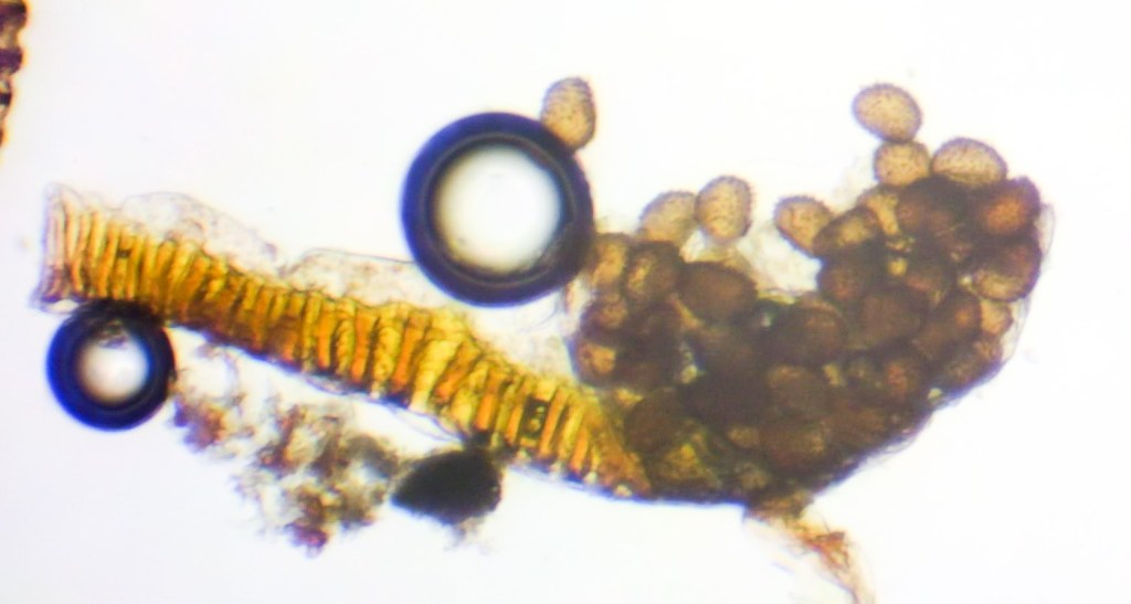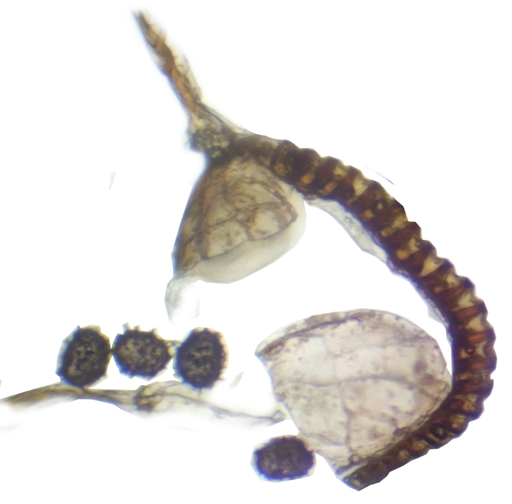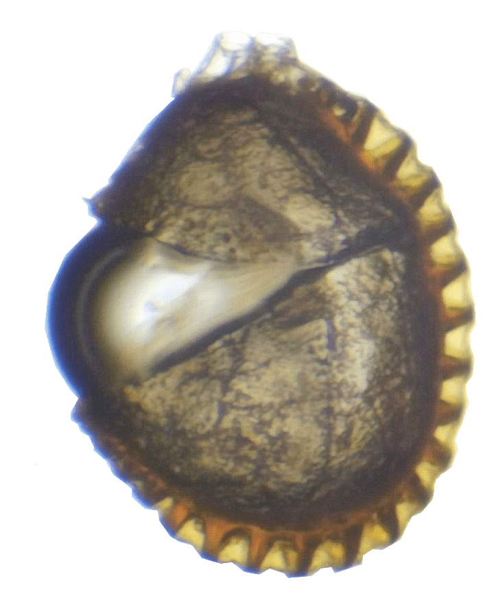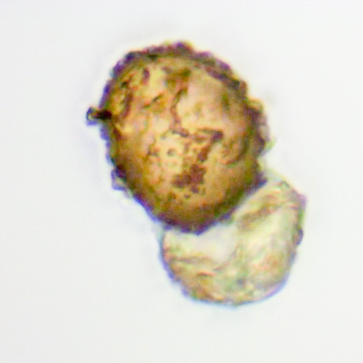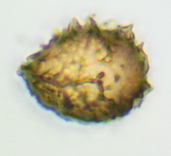 Spores d’Asplenium scolopendrium observées au microscope optique, environ 22 µ :