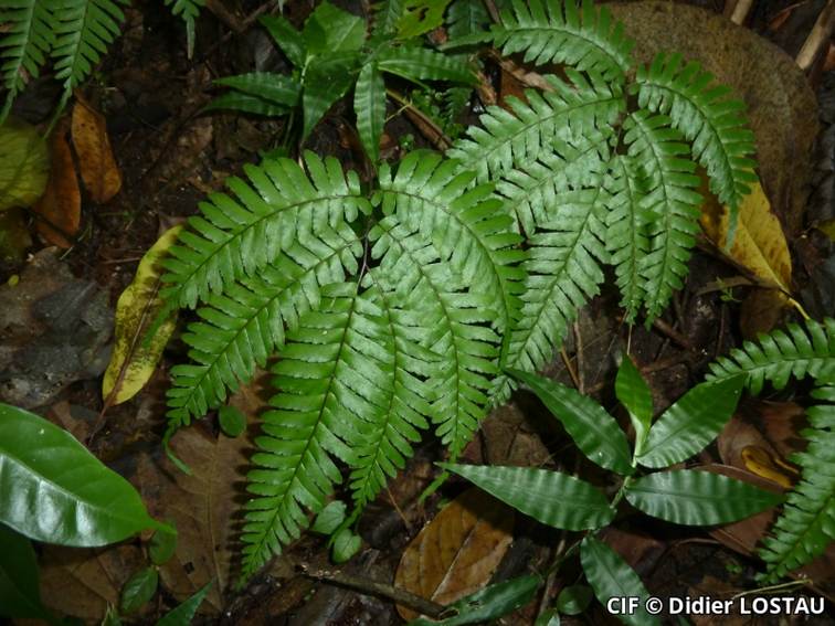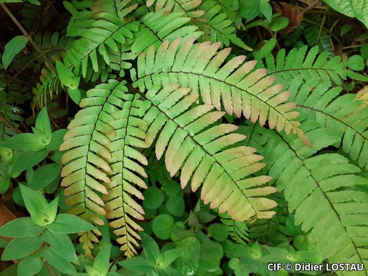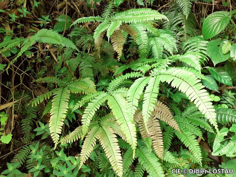 Adiantum tetraphyllum sur sentier forestier en Martinique