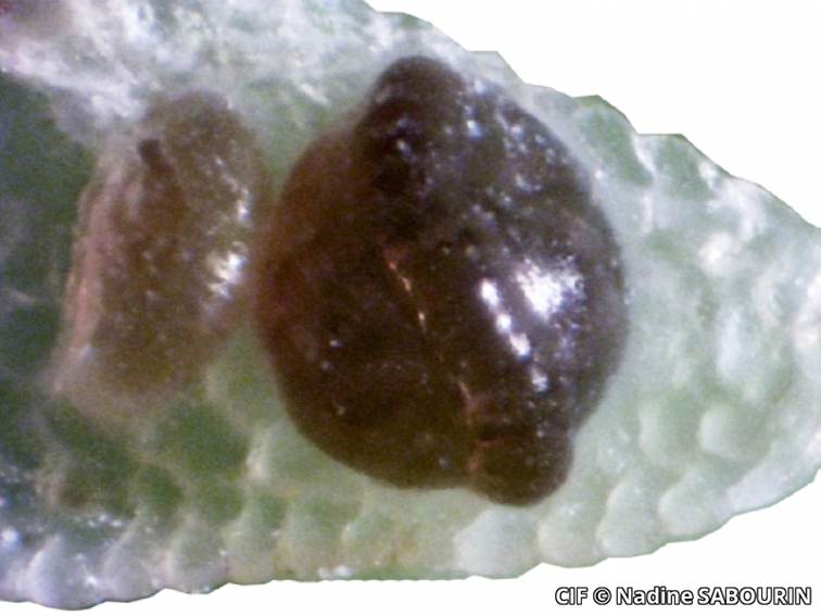 un sporange d’Adiantum capillus-veneris sur l’indusie vu au microscope optique, taille du sporange 0.1 mm
