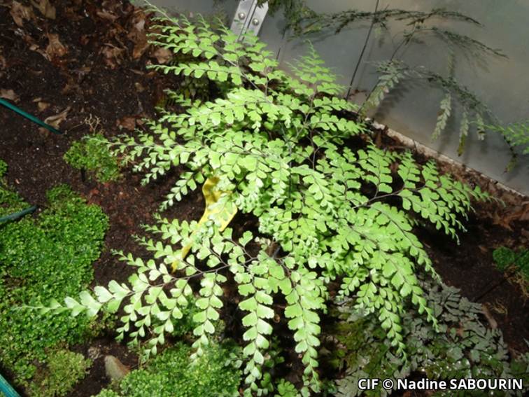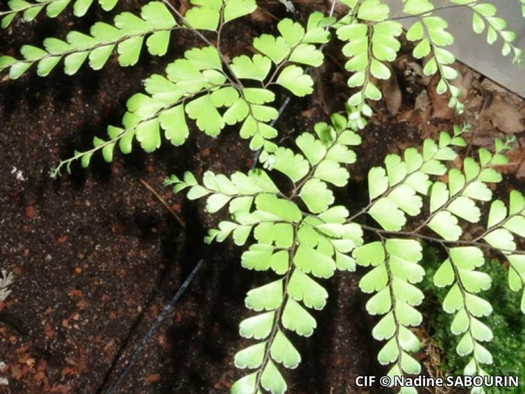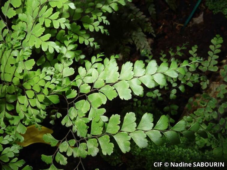 Adiantum : du grec adiantios « qui ne se mouille pas » allusion à la particularité des feuilles sur lesquelles l’eau de pluie glisse