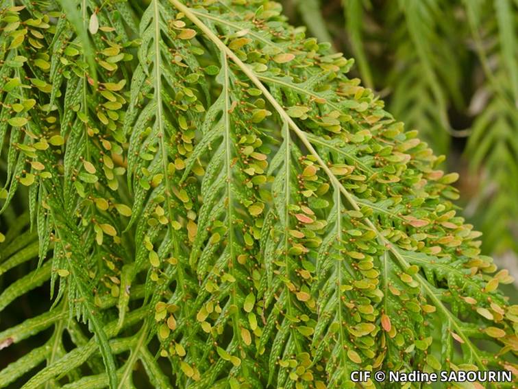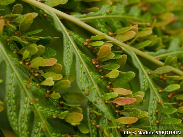 Le rhizome est décombant, brun foncé, trapu, densément écailleux ; les écailles sont rouge-brun, lancéolées, de 2 à 4 cm, membraneuses, entières ou avec quelques dents, fibriformes. Le pétiole, mesure 30 à 110 cm et 3 à 15 mm de diamètre, la base est densément écailleuse ; la partie supérieure du pétiole et du rachis est peu recouverte d’écailles brunes largement lancéolées, la surface est rugueuse avec des cicatrices d’écailles ; le limbe est profondément bipennatifide, brun ou légèrement vert une fois sec, oblong-ovale ou elliptique, de 35 à 120 cm × 30 à 40 cm, coriace, glabre, l’apex est acuminé ; les pennes 5 à 9 jusqu’à 13 paires sont courtement pétiolées, lancéolées ; les pennes inférieures et moyennes de 10 à 30 cm × 4 à 9 cm, sont profondément pennatifides à 1 à 2 mm de la nervure, à base asymétrique avec 1 à 3 lobes basiscopiques manquants, l’apex est long acuminé ou caudé ; les lobes de 10 à 14 jusqu’à 24 paires, sont rapprochés ou séparés, obliques, oblongs-lancéolés, de 3 à 9 cm × 0,5 à 0,9 cm, légèrement rétrécis à la base, au bord cuspidé denté, parfois lobé, l’apex est long acuminé ou caudé ; les nervures sont évidentes, anastomosées avec une rangée d’aréoles le long des côtes et 2 ou 3 rangées d’aréoles polygonales discrètes, libres distalement, simples ou fourchues. Les bulbilles foliaires sont petites et généralement abondantes sur les surfaces adaxiales des lobes du pavillon. Les sores occupent des aréoles et sont en forme de croissant ou elliptiques, enfoncés dans des dépressions bordées ; l’indusie est brun foncé, épaisse, papyracée.