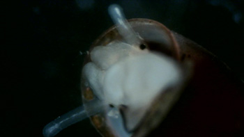 Ce petit mollusque mesure environ 2 mm. Il appartient à la famille des Pyramidellidae, des micro mollusques pour la plupart parasites. Brachystomia scalaris est un parasite des moules. On peut l’observer dans les moulières entre les byssus, filaments produits par les moules pour s’accrocher solidement aux rochers et résister aux assauts des vagues. Le pied est blanchâtre, les yeux sont disposés sur la tête entre les tentacules.
